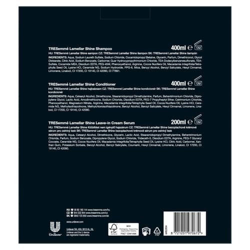 Ragyogj a TRESemmé Lamellar Shine termékcsalád erejével! Az ajándékcsomag mindent tartalmaz, ami a fényes, sima és egészséges hajhoz szükséges, a különleges lamellás technológiának köszönhetően szalonminőségű eredményt biztosít otthonodban.