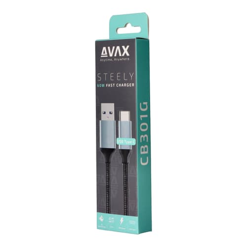 AVAX CB301G STEELY USB A-Type C, 1.5m fast charger, braided cable, 3A, steel-grey