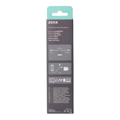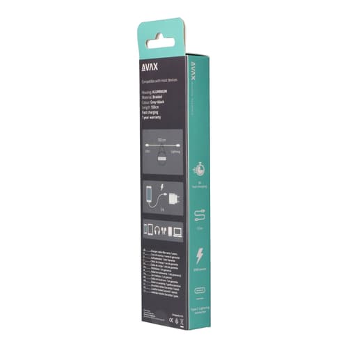 AVAX CB-402G STEELY Type C-Lightning 20W, 1.5m gyorstöltő, sodorszálas kábel, 3A, acélszürke