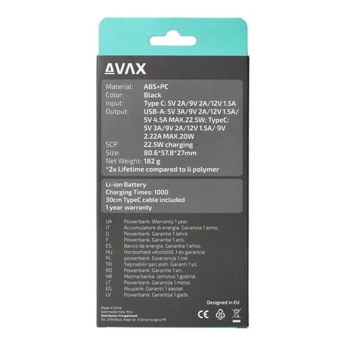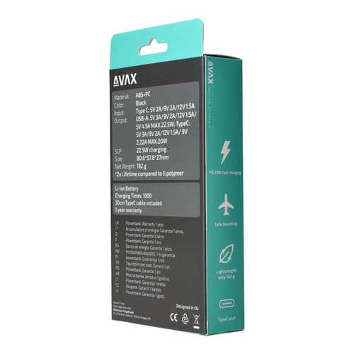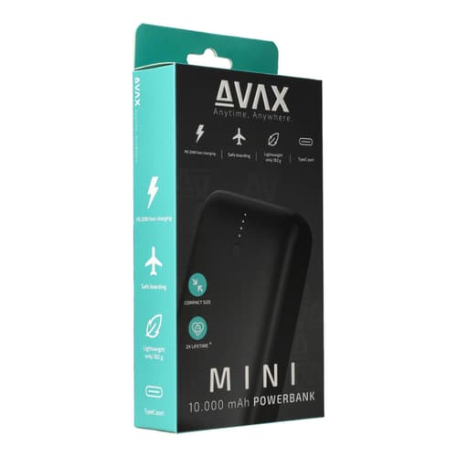 AVAX PB105B MINI PD/Type C 20W 10.000mAh gyorstöltő powerbank,fekete