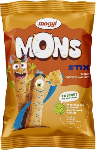 A Mogyi márka a nassolnivalók szakértője, és a Mons Stix a ropogós élmény és az intenzív íz tökéletes kombinációja. Ez a snack gondosan előkészített kukoricából készül, amit hosszú, praktikus pálcikákra formáznak. A stixeket gazdagon bevonják a telt, finom sajtos aromával, ami a sós, savanykás és fűszeres jegyek harmonikus egyensúlyát kínálja.