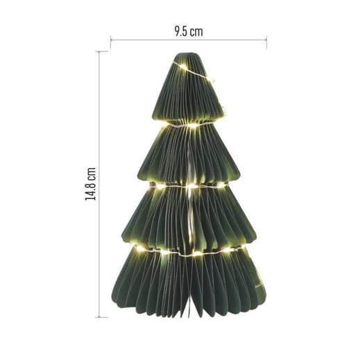 Varázsolj apró, ünnepi hangulatot otthonodba ezzel a 15 cm magas papír karácsonyfával, amely stabil állvánnyal rendelkezik. A meleg fehér LED fények lágy, meghitt világítást biztosítanak, így ideális választás asztalra, polcra, ablakpárkányra vagy kisebb dekorációs helyekre.