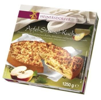 A Heinersdorfer márka a hagyományos német/közép-európai sütemények minőségét garantálja. Ennek a tortának a titka az omlós, vajas linzertészta alapon nyugszik, melyre bőségesen került a töltelék: a torta 62%-a almakészítmény, amiben zamatos mazsolák bújnak meg. Az alma édes-savanykás íze, a mazsola lédús textúrája és a finom fűszerek tökéletes harmóniát alkotnak.
