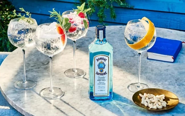 Bombay Sapphire Gin is a unique and balanced premium gin, one of the world's leading gin brands. It is easily recognizable by the special shape of its bottle and its distinctive sapphire blue color.