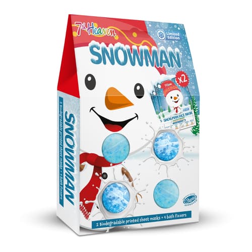 ☃️ Vidám, ünnepi design – Hóember arcmaszk és pezsgő fürdőgolyók