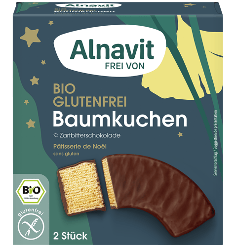 Az Alnavit BIO gluténmentes Baumkuchen rétegzett sütemény étcsokoládéval mártva a klasszikus német sütemény hagyományos ízeit ötvözi a modern, egészségtudatos táplálkozással. Ez a kiváló minőségű, bio alapanyagokból készült desszert gyönyörűen rétegzett tésztájáról ismert, amelynek minden szelete különleges gondossággal készült. A Baumkuchen, vagyis „fa torta” néven is ismert sütemény jellegzetes, gyűrűs szerkezete a kézműves sütési eljárásnak köszönhető, mely során a tésztát rétegről rétegre sütik aranybarnára.