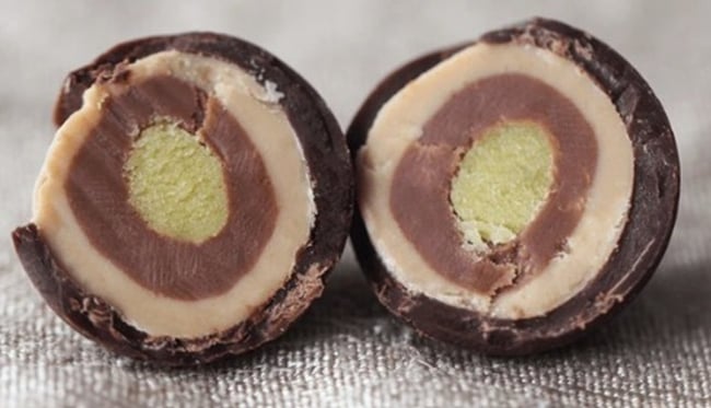 Pralinék világos (27%) és sötét (14%) mogyorós töltelékkel, marcipános töltelékkel (8%) és pisztáciával