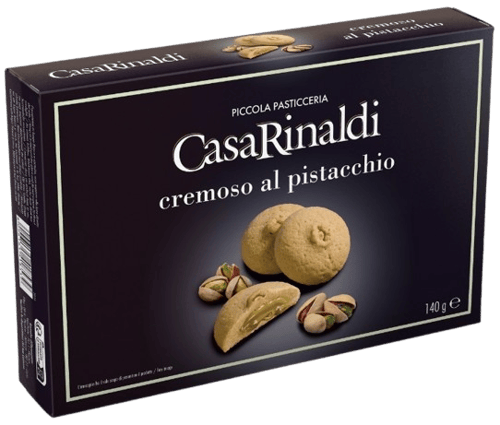 A Casa Rinaldi márka a legmagasabb minőségű olasz gasztronómiai élményt garantálja. Ez a keksz az olasz cukrászat hagyományait követve, omlós, vajas tésztával készült, amit a selymes, intenzív pisztáciakrém töltelék tesz felejthetetlenné. A pisztácia kifinomult, diós íze a vajas tésztával kombinálva egy elegáns, gazdag ízvilágot teremt.