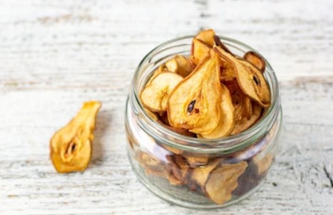 Karamellizált fehércsokoládéba töltött pezsgős csokoládékrém (25%) körtezselével (25%)