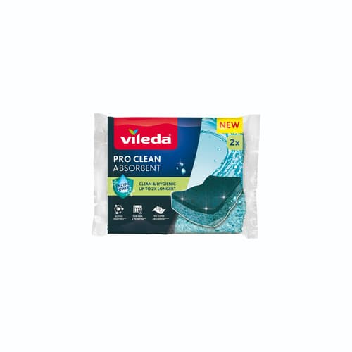 A Vileda Pro Clean viszkóz szivacs a konyhai tisztítás megbízható és higiénikus eszköze. Gyorsan és hatékonyan kezeli a kiömlött folyadékokat és szennyeződéseket, miközben környezettudatos megoldást kínál.
