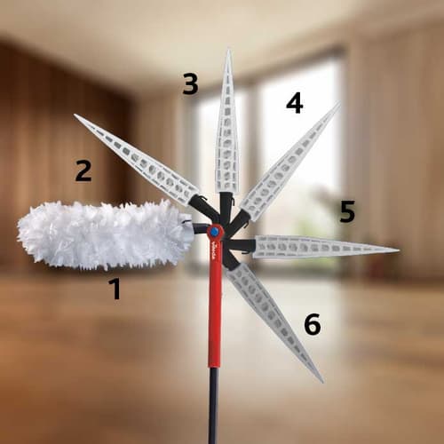 🔄 Rugalmas és állítható fej – A fej 6 pozícióban forgatható, így minden zugot elérsz, akár polcokon, redőnyökön, tükrökön vagy szellőzőkben.
