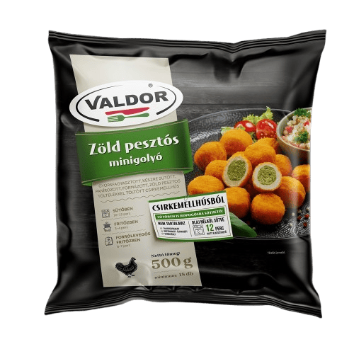 Készíts gyorsan, egyszerűen és ínycsiklandó, mediterrán ihletésű falatokat a Valdor Zöld Pesztós Minigolyókkal! Ha a szaftos csirkehúst a friss bazsalikomos pesto aromájával szereted, ami percek alatt elkészül, akkor ez a fagyasztott minigolyó a tökéletes választás.