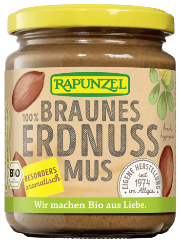 Taste the Rapunzel Brown Peanut Butter, and enjoy the pure, intense flavour of roasted peanuts, in organic quality! If you are looking for the rich, characteristic taste of peanut spreads that do not contain unnecessary additives, then this ORGANIC butter is the perfect choice for you.