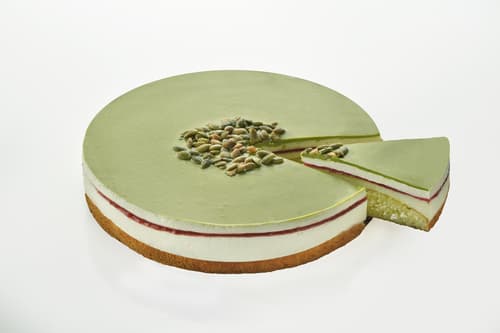 Mascarpone krém (40%), kevert tésztán (37%), málna réteggel (10%), tökmagos fehércsoki borítással (12%) Gyorsfagyasztott, szeletelt cukrászipari készítmény.