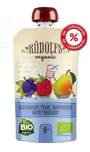 🫐🍐🍓 RUDOLFS ORGANIC – Bio áfonya, körte, málna joghurttal (6 hónapos kortól)