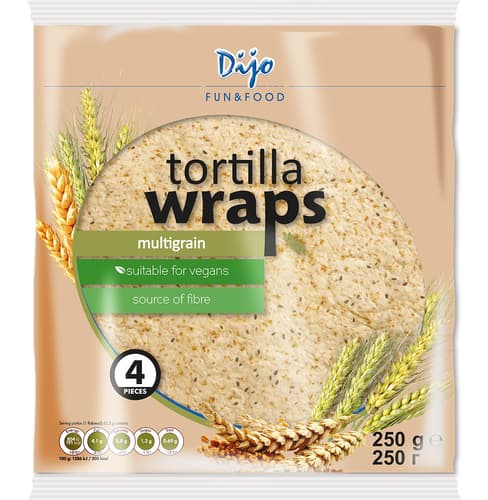 A Dijo Sokmagvas Tortilla a klasszikus tortilla egészségtudatosabb, rostban gazdag változata, amely különböző magvak keverékével – például lenmaggal, napraforgómaggal vagy szezámmaggal – készül, így táplálóbb és tartalmasabb élményt nyújt, mint egy hagyományos búzaalapú tortilla. A lapok puha, mégis jól tölthető és hajlítható állagúak, így tökéletes alapot biztosítanak wrapekhez, burritókhoz, quesadillához vagy akár különféle hideg és meleg szendvicsekhez. A magvaknak köszönhetően enyhén diós, karakteres ízvilággal rendelkezik, amely remekül illik zöldséges, húsos, halas vagy akár vegán töltelékekhez is. A 4 darabos kiszerelés praktikus, ideális családi vacsorához, előre elkészíthető ebédekhez vagy gyors, kreatív ételmegoldásokhoz. Serpenyőben vagy sütőben néhány másodperc alatt felmelegíthető, így pillanatok alatt frissen tálalható.