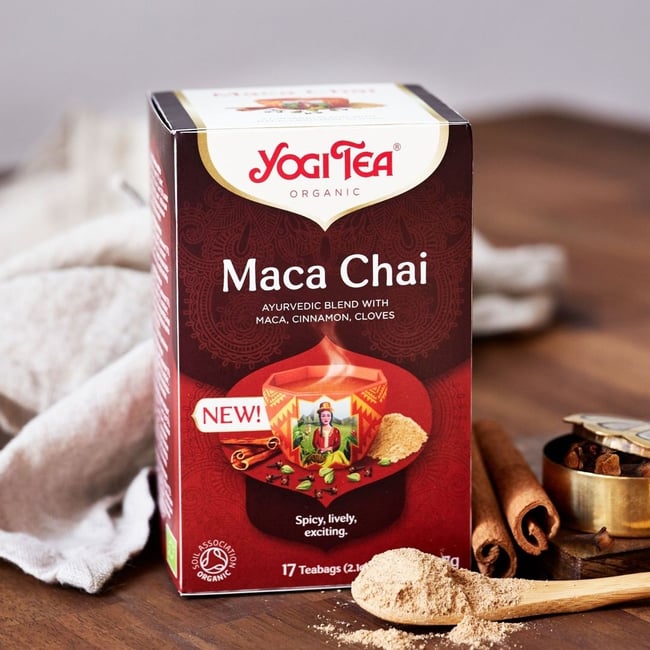 Biotermék. Ajurvédikus fűszerkeverék maca őrleménnyel, fahéjjal és szegfűszeggel. Tea azok számára, akik valami új dolog felfedezésére vágynak. Klasszikus chai tea megbolondítva a maca édes, enyhén malátás ízével, mely lenyűgöző dinamizmust kölcsönöz ennek a keveréknek. Engedd, hogy ez az egzotikus ízkombináció felfedezésre ösztönözzön és a kalandvágy újra felébredjen benned! Édesgyökér tartalma miatt a magas vérnyomásban szenvedők kerüljék túlzott mennyiségű fogyasztását!