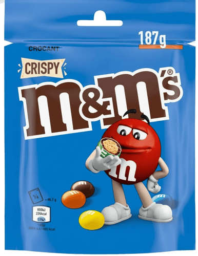 M&M's Crispy drazsé.Ízletes és roppanó belső rész ínycsiklandó tejcsokoládéba mártva és ropogós, színes héjba burkolva. Nincs is jobb, mint egy finom ropogtatás ebéd előtt, vagy ha valami élvezeteset szeretne a reggeli kávé mellé. Akár otthon pihen, vagy tanul, akár mások szervezeti ábrái iránt igyekszik lelkesedést mutatni, a Crispy M&M's a legjobb választás. Egy zacskó Crispy M&M's a zsebben biztosan kordában tartja az éhséget bármilyen hosszú út során.