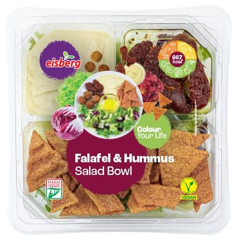 Discover the harmony of oriental-inspired flavours in Eisberg's special Falafel Bowl! The crispy, golden-brown falafel balls, carefully selected fresh salad mix, soft bulgur, and creamy, yoghurty dressing create a perfect balance. A bowl that is simultaneously nutritious, refined, and ready-to-eat â where quality meets convenience.