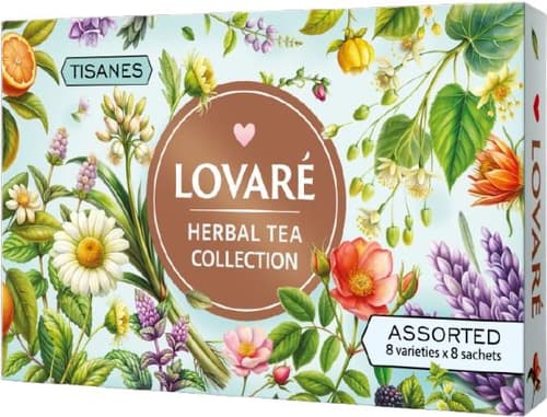 Élvezze a természet ízeit és aromáit a Lovaré Herbal Tea Collection segítségével. Ez az exkluzív válogatás 64 különböző gyógytea-tasakot tartalmaz, gondosan válogatott alapanyagokból, mint például kamillavirág, citromfű és borsmenta. A koffeinmentes keverékek ideálisak a nap bármely szakában, és tökéletes választást jelentenek mind gyermekek, mind idősebbek számára.