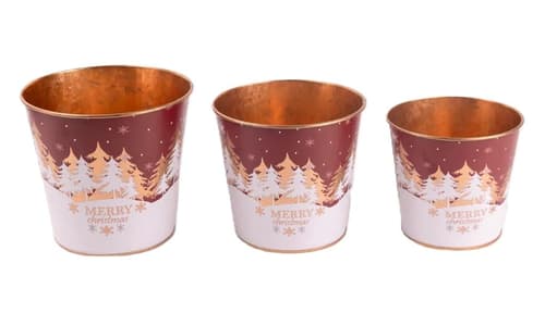 This three-piece tin planter set, adorned with a magical pine forest pattern and "Merry Christmas" inscription, brings the atmosphere of winter nature into your home.