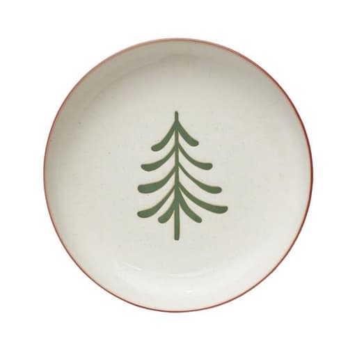 A Home&You zöld fenyő mintás tányérja 22 cm átmérőjű, és kőedényből készült. Mosogatógépben és mikrohullámú sütőben is használható, így praktikus választás a mindennapi használatra.
