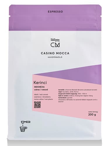 A Casino Mocca Kerinci eszpresszókávé egy igazi különlegesség, amely Szumátra vulkanikus talaján, 1400–1700 méteres magasságban termesztett arabica kávébabból készül. A spontán fermentáció és a száraz feldolgozási eljárás révén a kávé ízvilága egyedülállóan gazdag és összetett, főbb ízjegyei között megtalálható a ribizli, a szamóca és a rumos szilva. Minden csésze egy utazás Indonézia egzotikus világába.