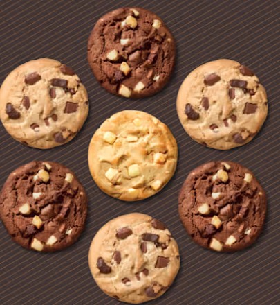 Ez a luxus válogatás belga csokoládédarabos sütikből ideális a megosztásra. Vajas keksz burkolja a bőséges tej-, ét- vagy fehér csokoládédarabokat a szájban olvadó finomságért