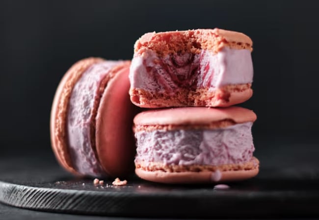 Készülj fel egy olyan elegáns, fagyasztott desszertre, ami egyenesen egy francia cukrászdából érkezett! Ez az M&S jégkrém a málna és a macaron tökéletes kombinációja. A lágy, krémes málnás tejjégkrém málnaszósszal örvénylik, ami friss, fanyar ízt ad. A málnás macaron darabok mandula, tojásfehérje és cukor alapon készülnek, és a ropogós textúrát csempészik a jégkrémbe. A macaron ropogása, a málnaszósz savanykás csípése és a tejjégkrém lágysága alkot tökéletes összhangot. Ha valami gyümölcsösen frissítőre és elegánsan édesre vágysz, ezt ki kell kanalaznod!