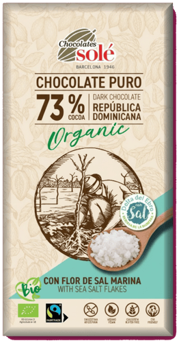 Chocolates Solé 73% BIO Étcsokoládé tengeri sópelyhekkel