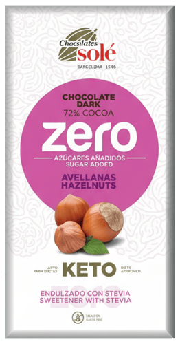 Chocolates Solé Keserű csokoládé 72% kakaótartalommal, steviával és mogyoróval