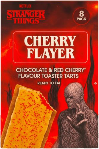 Készülj fel az Upside Down ízvilágára a Stranger Things Sütőben melegíthető Tortácskák Cherry Flayer változatával! Ez a csokis-cseresznyés sütemény neve a sorozat egyik gonoszára, a Mind Flayer-re utal, és ízében is intenzív! A tortácska sötét, kakaós tésztából készült, amely lédús, édes-savanykás cseresznyetölteléket rejt. A külsőt általában máz vagy szórás díszíti. Melegítsd fel a pirítóban vagy mikróban a tökéletes, krémes-meleg élményért! Ideális minden Stranger Things rajongónak, vagy ha valami nosztalgikus, gyümölcsös-csokis csemegére vágysz.