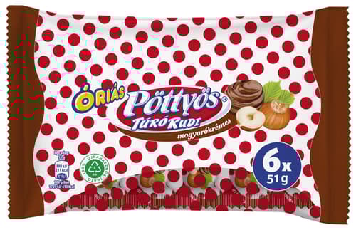 Pöttyös Óriás Túró Rudi mogyorókrémes túródesszert kakaós étbevonattal (6×51G)
