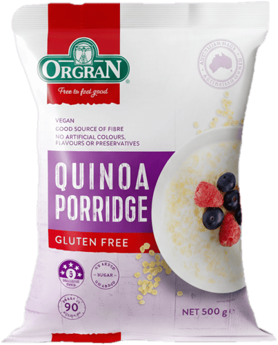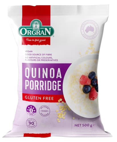 Több, mint 30 éve a tudtos táplálkozás élvonalában Az ORGRAN megbízható választás mindazoknak, akik különleges étrendet folytatnak. Világszerte több, mint 70 országban kedvelt és 80 féle egészséges étrendet követő, diétás terméket kínál. ORGRAN: Mentesen. Szabadon. Természetesen jól. Puffasztott Quinoa kása mely állagában eltér a hagyományos, pépes jellegű kásáktól és inkább a hagyományos zabkására emlékeztett. Teljes kiőrlésű quinoából készült, ez a reggeli nemcsak tápláló, de finom is. Tökéletes a sietős reggelekre, mivel mindössze 90 másodperc alatt elkészülhet. Ráadásul hozzáadott cukor nélkül. Minden ORGRAN termék: Tej-, tojás-, glutén-, élesztőmentes és VEGÁN. Ez a termék továbbá: KOSHER, szója,- GMO-, és magmentes (*Földimogyoró, kesudió és pisztácia mentes üzemből). A termék Coeliac Australia & NZ tanúsítvánnyal rendelkezik, mely még az Uniós előírásnál is szigorúbb kritériumoknak felel meg (a termék nem tartalmaz kimutatható glutént (0 ppm). Cöliákiások számára is biztonságos.