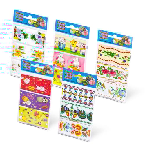 Alkoss igazán egyedi húsvéti tojásokat ezzel a 6 darabos matrica szettel! Minden csomagban 6 különböző minta található, amelyekkel könnyedén színes, kreatív és vidám dekorációt készíthetsz a tavaszi ünnepre. Ötféle csomag elérhető, így mindig megtalálhatod a stílusodhoz leginkább illőt.