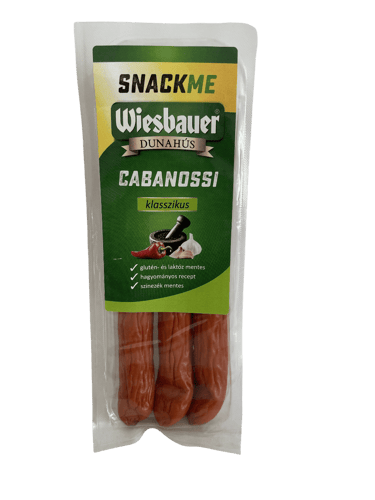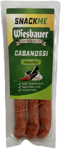 A Wiesbauer Cabanossi csemege paprikás egy tradicionális, közepesen fűszeres, paprikával ízesített kolbászfajta, amely a közép- és kelet-európai húskészítmények jellegzetes karakterét hozza el. A válogatott sertés- és marhahús finoman darálva, gondosan összeállított fűszerezéssel készül, amelyben a nemes paprika adja a domináns aromát: telt, enyhén fűszeres, mégsem csípős, így széles körben kedvelt ízvilágot képvisel. A csemege paprikás jellegű Cabanossi tradicionális hidegen füstölt eljárással érlelődik, ami intenzívebb ízt és jellegzetes füstös aromát kölcsönöz a kolbásznak, miközben a hús szaftos és harmonikus marad.