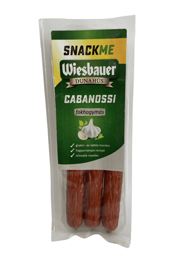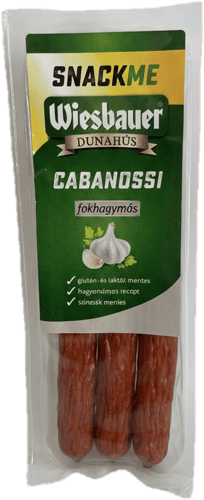 A Wiesbauer Cabanossi fokhagymás egy karakteres, ízben gazdag, hagyományos közép- és kelet-európai típusú füstölt kolbász, amely a klasszikus Cabanossi receptet a fokhagyma aromájával emeli még karakteresebb szintre. A válogatott sertés- és marhahús gondosan összeállított fűszerkeverékkel — a fokhagyma domináns szerepével — érlelődik, így minden szeletben telt, fűszeres, ugyanakkor kiegyensúlyozott ízélmény bontakozik ki. A fokhagymás karakter nem túl erős, mégis elegánsan átjárja a húst, felerősítve annak természetes szaftosságát és füstös aromáját.