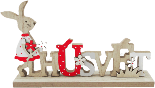 Tedd hangulatossá a húsvéti dekorációdat ezzel a színes fa felirattal! A piros és fehér mintás nyuszi lány bájosan díszíti az otthonod.