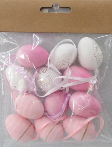 Húsvéti műanyag tojás fehér/rózsaszín 3x4 cm, 12 db