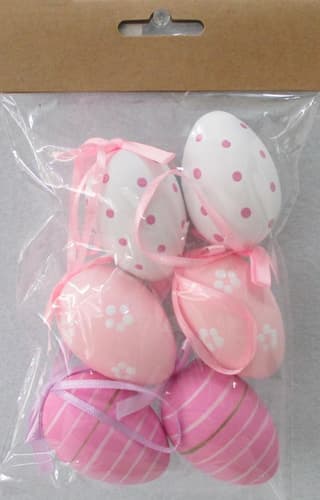 Dobd fel a húsvéti dekorációdat ezekkel a bájos, rózsaszín-fehér mintás műanyag tojásokkal! Tökéletesek fákra, koszorúkra, virágcsokrokba vagy bármilyen tavaszi díszítés részeként. Az akasztónak köszönhetően könnyen felhelyezhetők, és stabilan tartják helyüket.