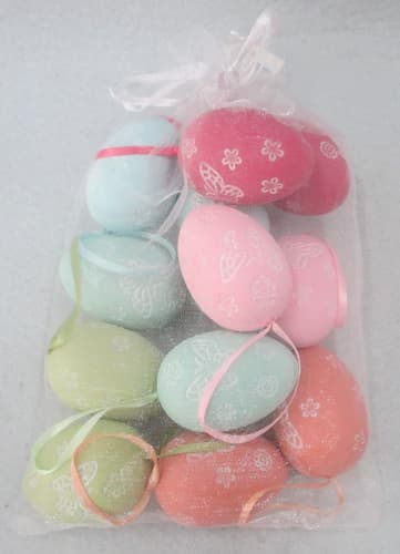 Húsvéti műanyag tojás virágmintás színes 4x6 cm, 12 db