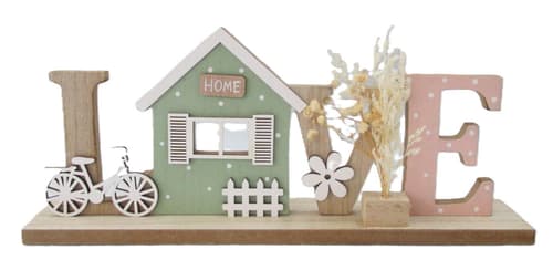 Tedd otthonod barátságossá ezzel a bájos fa dekorációval! A ház forma és a “LOVE” felirat tökéletesen kifejezi a meleg, szeretetteljes otthon hangulatát. Ideális polcra, komódra vagy ablakpárkányra.