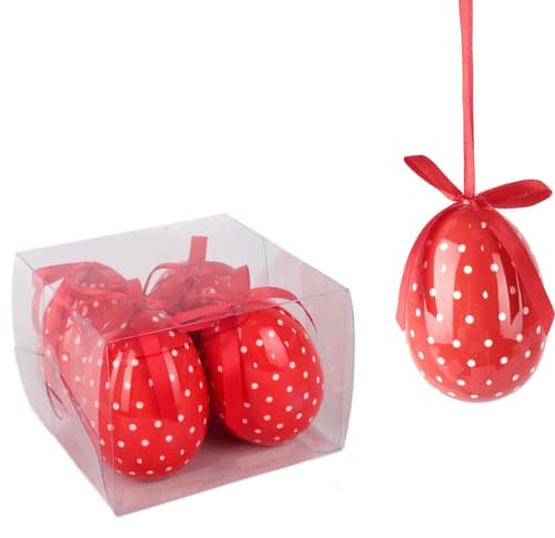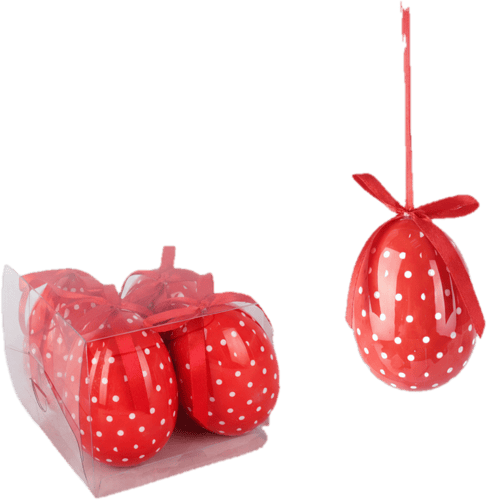 Húsvéti dekor tojás piros/fehér pöttyös 7,5 cm, 4 db