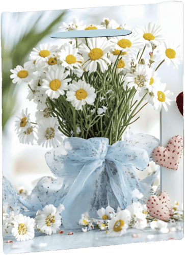 Ajándéktasak margaréta csokor 18×23 cm 🌼