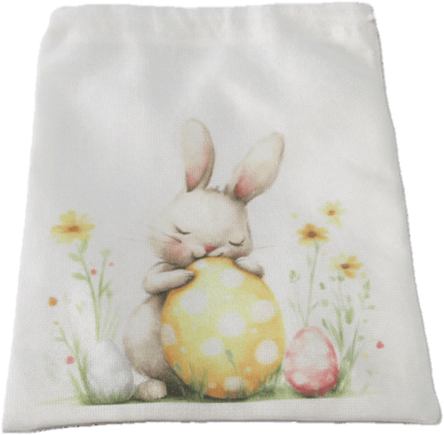 Húsvéti Textil szütyő nyuszis fehér 14x17 cm
