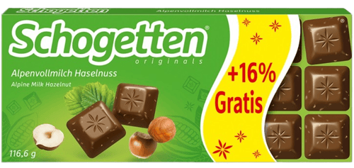 A német Schogetten ikonikus kockákból álló, könnyen adagolható csokoládéja.