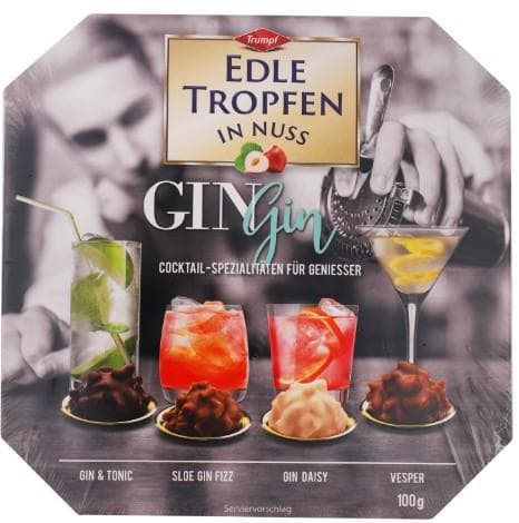 Fedezd fel a prémium gin-koktélok világát ebben az exkluzív válogatásban! A doboz négyféle, mesterien kikevert gin-különlegességet tartalmaz, melyeket finom kristálycukor-kéreg őriz. A bonbonokat selymes tej- és étcsokoládé borítja, amit ropogós mogyoródarabkák tesznek teljessé.