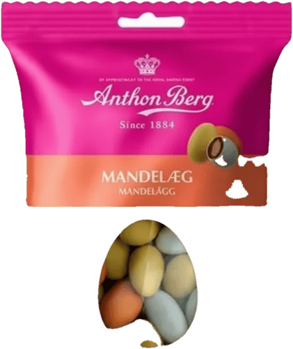 Az Anthon Berg mandulás tojások cukorhéjból, csokoládéból és pirított mandulából állnak.
