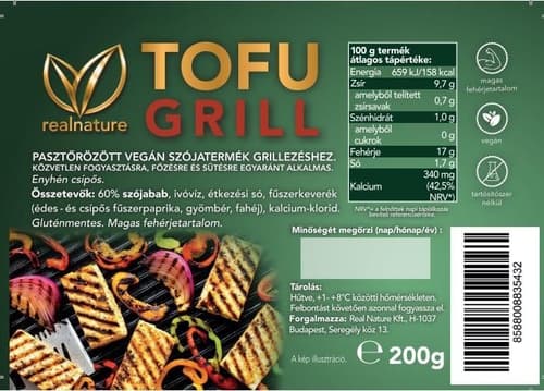 A Real Nature Grill tofu egy különleges, grillezésre tervezett növényi alapú fehérje, amely a tofu semleges, finom textúráját egy karakteres, grillezhető formába önti, és így kiválóan használható húsmentes grill- vagy barbecue-fogásokhoz. A grillezett tofu ideális választás azok számára, akik szeretnék élvezni a grillételek gazdag ízét növényi alapokon — a Real Nature Grill tofu struktúrája és nedvességtartalma úgy van kialakítva, hogy sütés, grillezés vagy serpenyős pirítás közben nem esik szét, miközben kívül finoman kérgesedik, belül pedig puha és selymes marad.