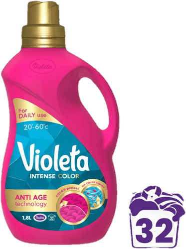 A VIOLETA Intense Color mosógél színes ruhákhoz egy speciális 2-az-1-ben mosószer, amely nemcsak eltávolítja a szennyeződéseket, hanem segít megőrizni a ruhák színeinek intenzitását és meghosszabbítani azok élettartamát. Kíméletes, mégis hatékony formula mélyen tisztít, miközben óvja a textíliák szerkezetét, és már 20 °C-on is hatékony tisztítást biztosít.